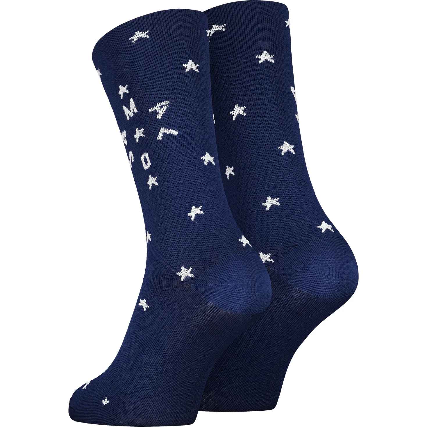 Schnelltrocknende Sportsocken in moderner Länge mit Allover Sternen und Maloja-Schriftzug.