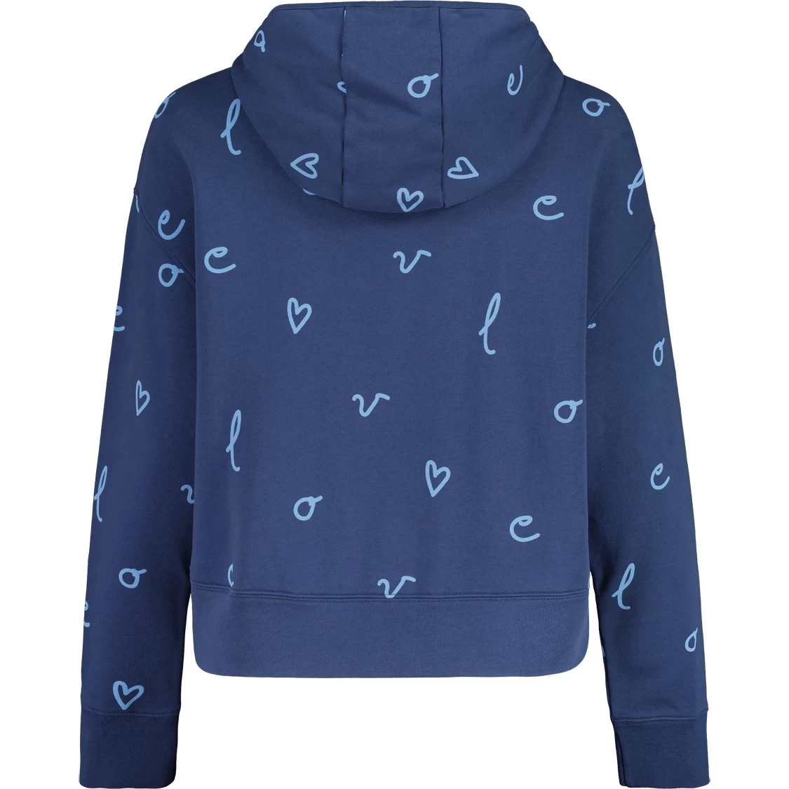 Bequemes Hoodie aus Biobaumwolle mit moderner Passform. Allover-Print, inspiriert von Alpenblumen bzw. VELO LOVE-Buchstaben.