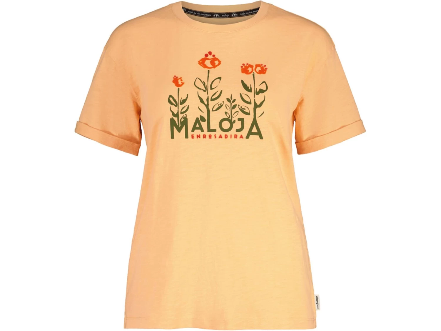 Das Maloja CauriaM. Organic Cotton Tee ist ein T-Shirt aus Flamée-Biobaumwolle mit floralem Maloja-Flockprint.