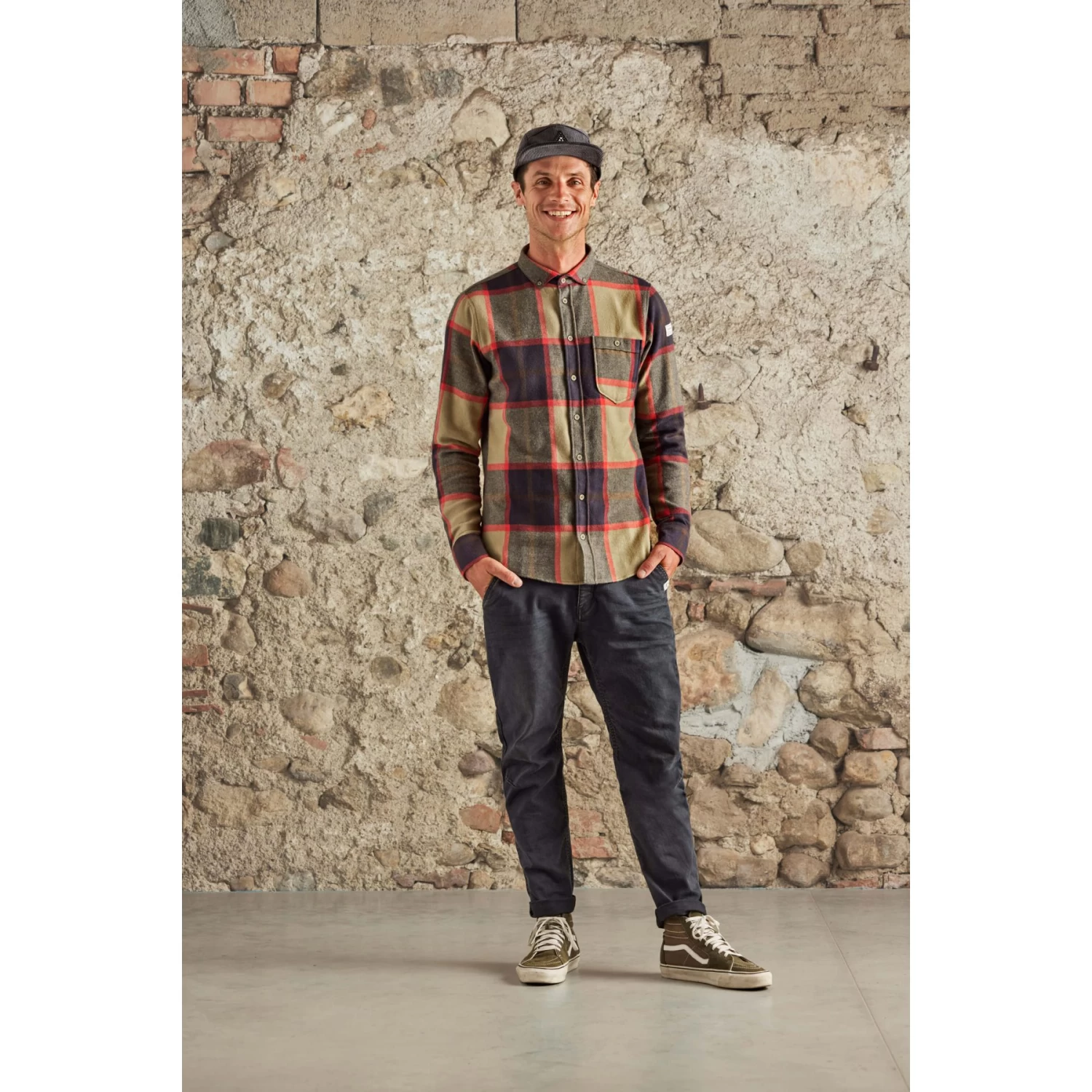 Locker geschnittene 5-Pocket-Pant aus Biobaumwolle, in einem Stück gefärbt. Zwei schräge Eingrifftaschen vorn mit zusätzlicher Coin-Pocket, zwei große aufgesetzte Gesäßtaschen mit Maloja-Stick darüber.