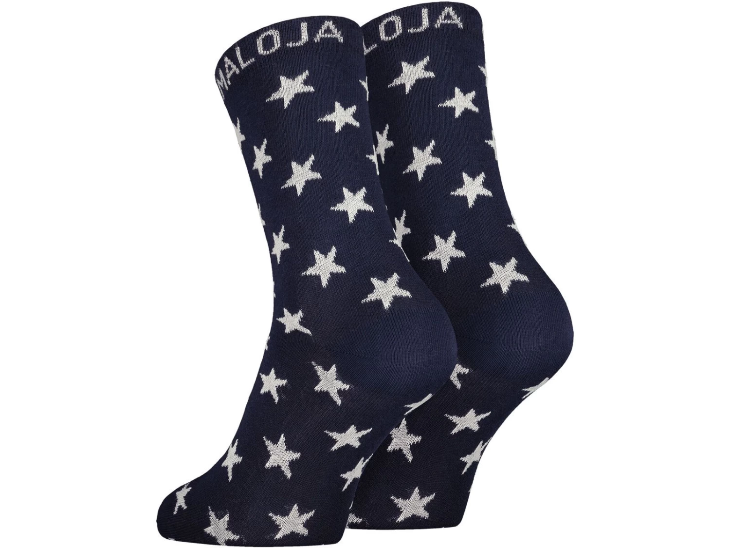 Socken in moderner Länge aus Baumwoll-Mix mit Allover Herzen, Maloja-Schriftzug am Bündchen.