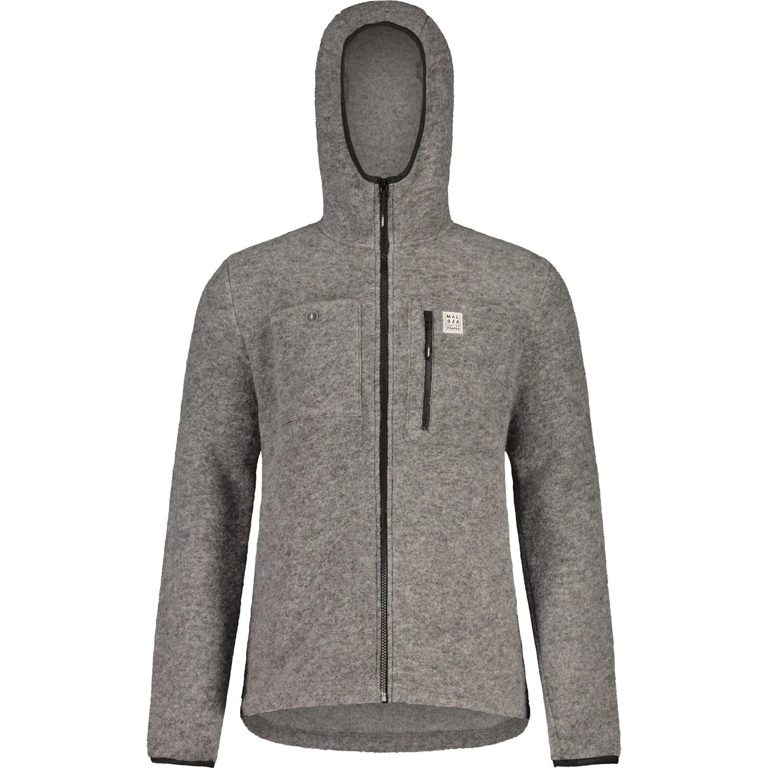 Das wärmende Alpwool-Material mit recycelter Wolle gibt dieser Kapuzenjacke einen unnachahmliches natürliches Tragegefühl. Zwei Brusttaschen, zwei seitliche Eingifftaschen mit Zipper, Maloja-Patch auf der linken Brusttasche.