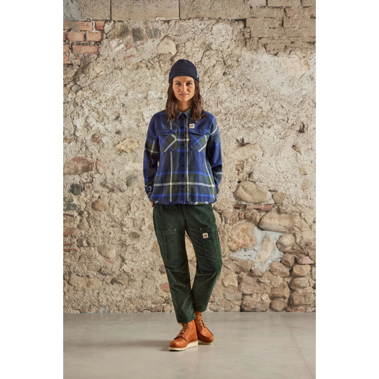 Flanell-Hemd aus Bio-Baumwolle, kastiger Schnitt, gefranster Saum, Maloja-Patch über der linken Brusttasche.