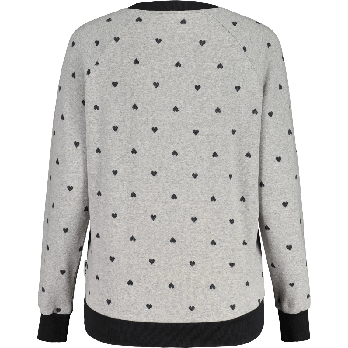 Sweatshirt aus kuscheligem Jersey Flanell mit eingestrickten Herzen, gerippten Bündchen am Hals, den Ärmeln und am Saum. Mit Maloja Herz-Label auf der Brust.