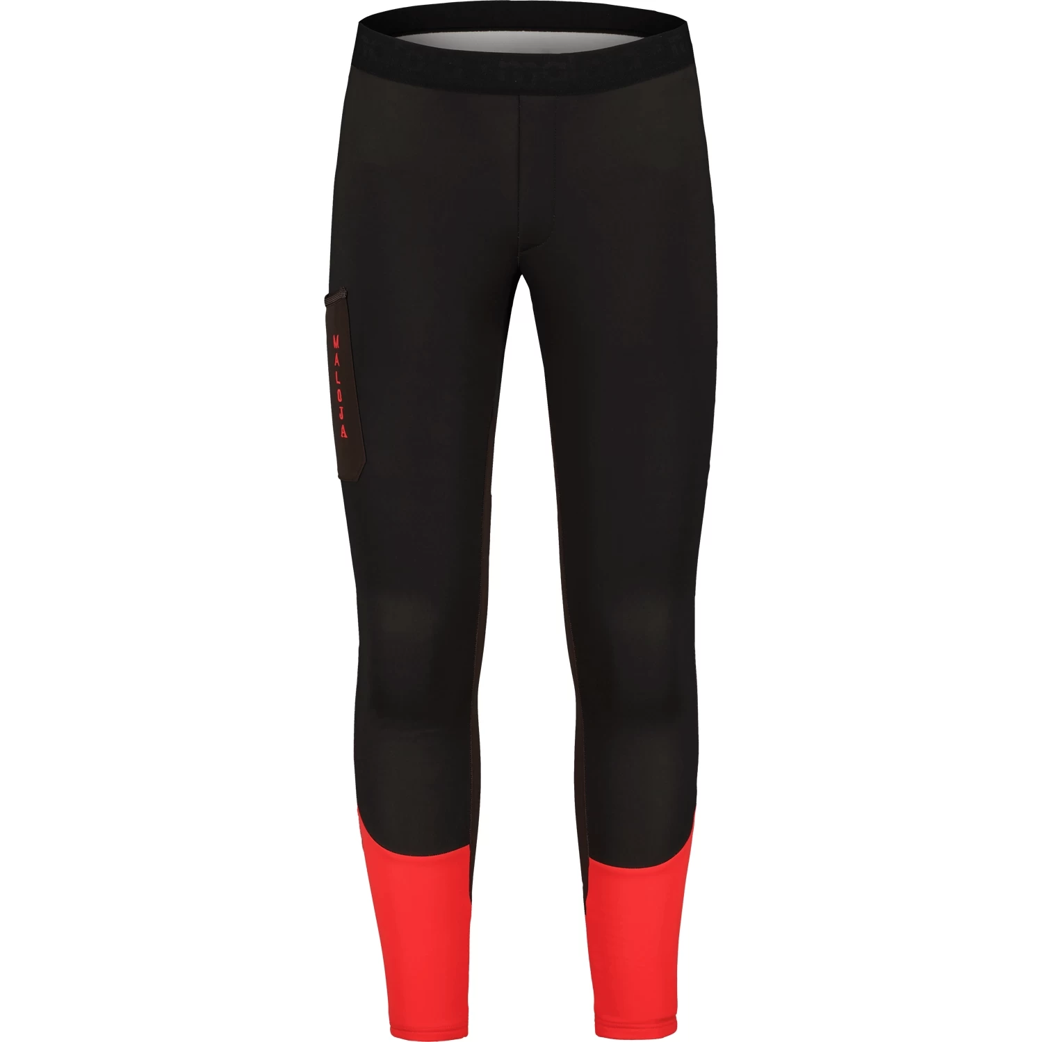 Glide&Ride-Label am rechten Schienbein, großer Maloja-Schriftzug über dem Po.