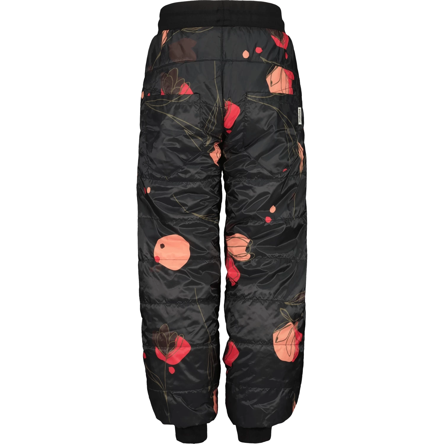 Isolationshose für kalte Tage mit wärmender Primaloft BIO-Wattierung und vertikalem Steppmuster. Beinabschlüsse mit Rippbündchen und Reißverschlüssen, um die Hose auch mit Ski- oder Wanderstiefeln An- und Ausziehen zu können. Zwei seitliche Eingrifftaschen mit Zippern, zwei aufgesetzte Gesäßtaschen. Maloja-Patch am linken Knie.