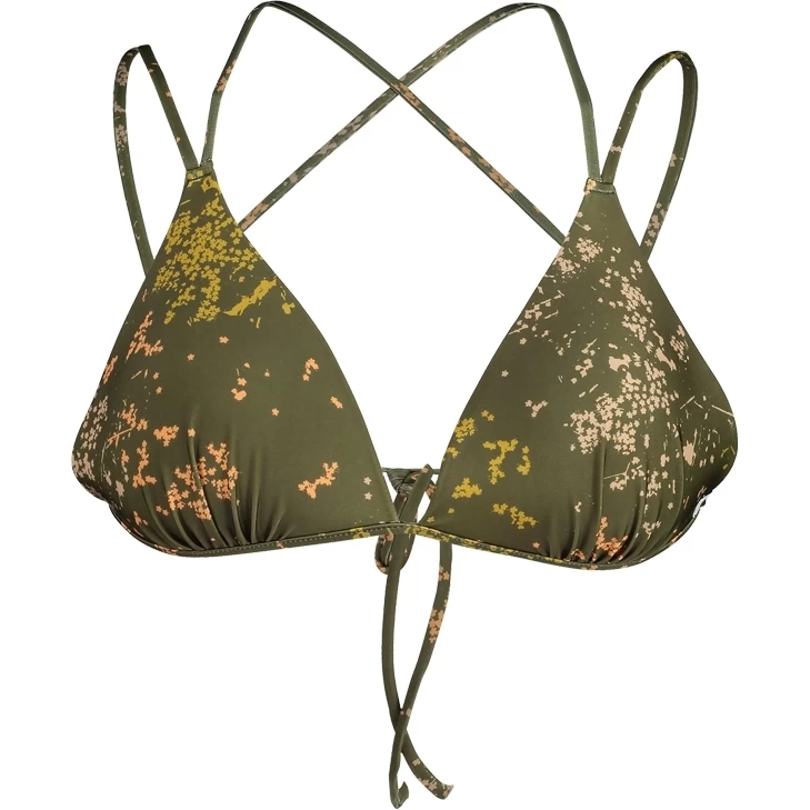 Bikini-Oberteil mit speziellem Print. Das Triangel Top ist bi-elastisch, schnelltrocknend und hat Bindebändchen, wattierte Cups und einen allover Print.